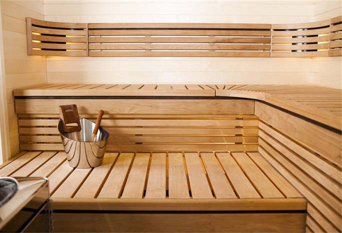 双层传统的木条长座驾,坚实牢固,可以自由选择在蒸桑拿的时候变换姿势,端坐或舒服横躺。室内放置桑拿炉位置的墙面与围栏都是采用内涵丰富的文化石,独特的设计,给桑拿房带来高端大气体验,温润的原木与厚实的文化石结合释放出的闲适慢生活,软硬搭配显得沉稳大气,不仅增加了桑拿房的观赏性,而且文化石本身具有导热功能和散发出来有益健康的微量元素,是实用性与观赏性的完美诠释。